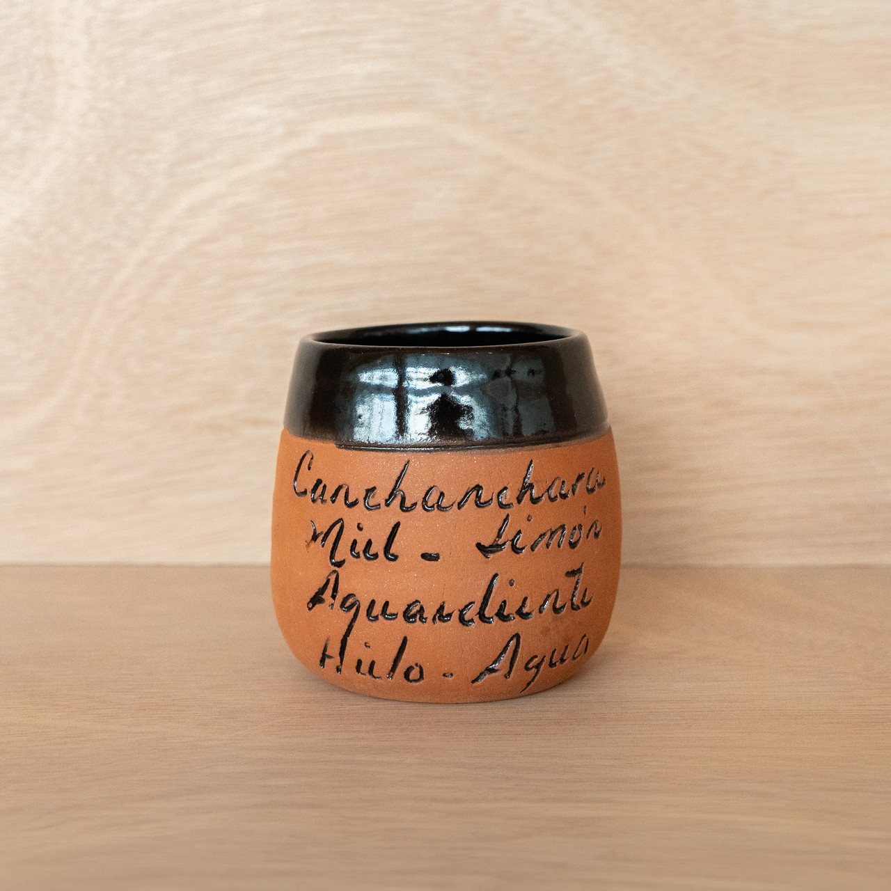 트리니다드에서 유래한 오래된 전통 칵테일 ‘칸찬차라’는 테라코타 컵에 담아 마셔요. 컵 표면에 럼, 꿀, 레몬, 얼음, 물 같은 재료가 손글씨로 적혀 있어요.