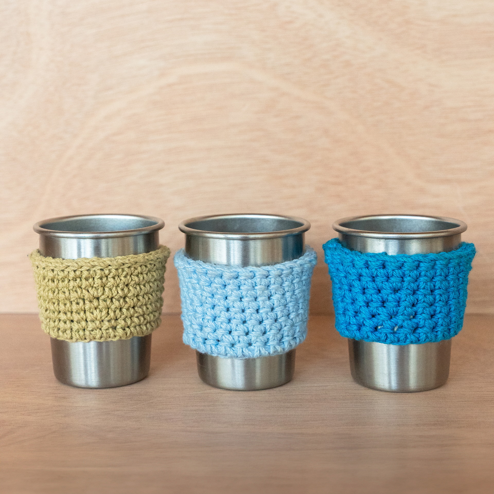 아마씨가 야외 활동 시 따뜻한 커피나 차를 나눠 마시기 위해 가지고 다니는 미니컵입니다. 홀더는 뜨개질을 좋아하는 언니가 직접 떠준 것입니다.